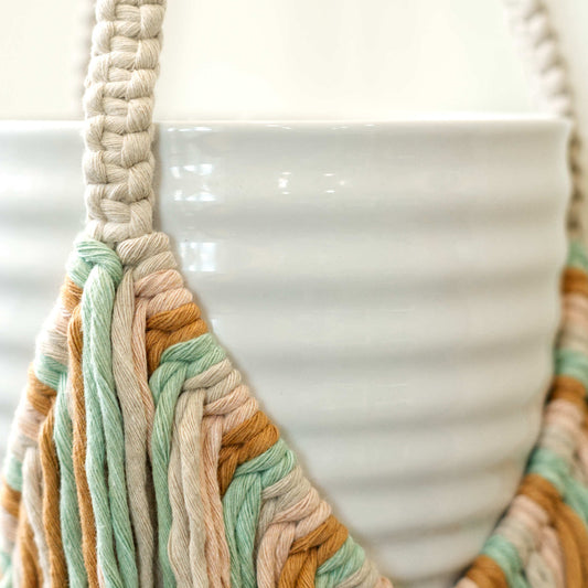 Discover our collection of handcrafted macramé pieces, made to order using eco-friendly, recycled cotton cord. Shop ready-made wall hangings, plant hangers, and more, or get inspired to request a custom piece. Please note that each item is made by hand, so creation and shipping times may vary. Crafted with care and sustainable materials you can trust. To request a custom-made piece contact Jess here, or email info@giveitagrow.shop and include your special requests along with screenshots of your inspiration.