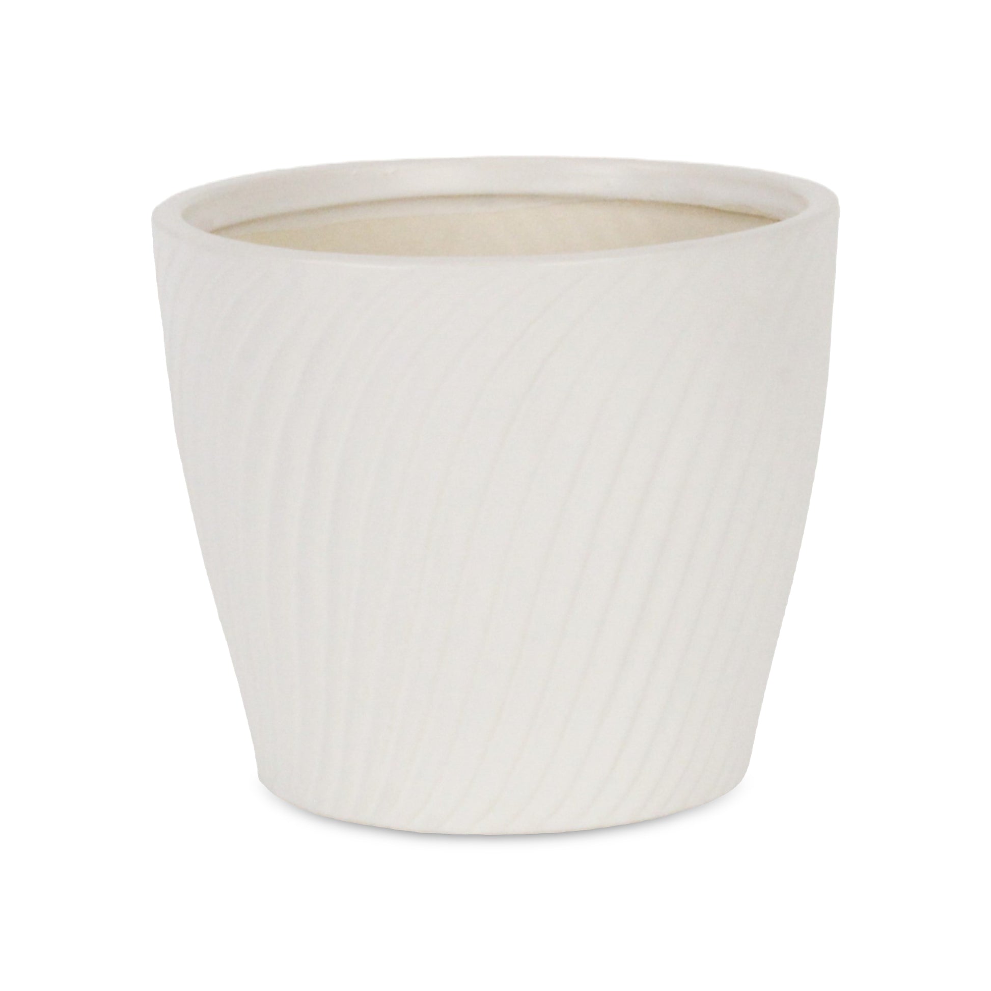 The Curula Tapered Curved Swirl Pattern Ceramic Pot is a beautifully handcrafted piece that marries artisanal craftsmanship with modern design. Each pot is entirely handmade and hand-finished, showcasing unique variations that highlight its artisanal quality. Made from high-quality ceramic materials, this pot features a sleek, curved tapered shape complemented by a repeating curved diagonal bar pattern that adds a touch of contemporary texture. The clean white finish and smooth texture create a refined and elegant look, making it a versatile addition to any indoor or outdoor space. Perfect for showcasing your favorite plants or decorative elements, the Curula Pot effortlessly blends style and functionality.