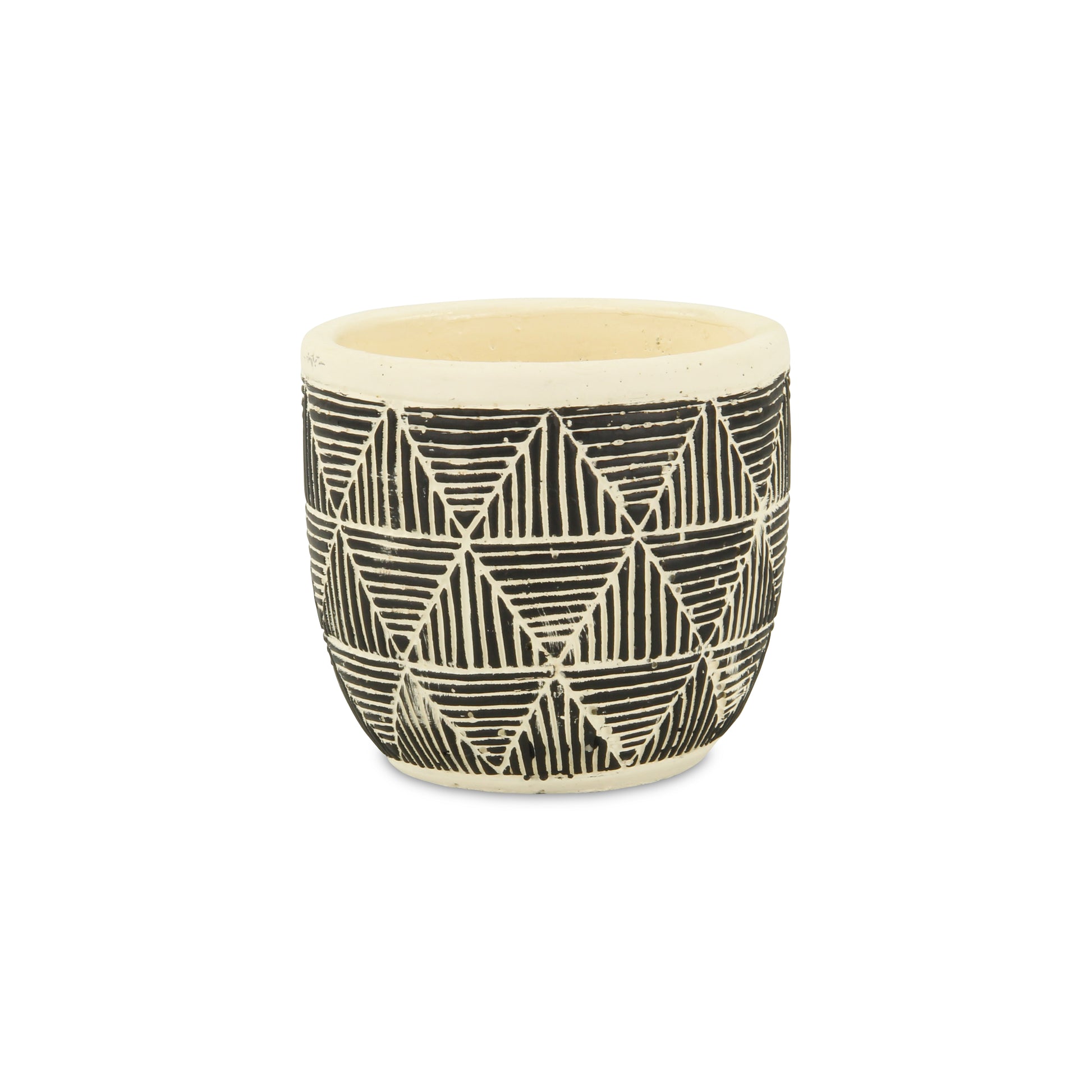 Elevate your decor with the Sankabe Banded Pyramid Pottery, a remarkable piece that combines artisanal craftsmanship with versatile design. Each pot is entirely handmade and hand-crafted from high-quality ceramic materials, showcasing an interlapping triangle pattern that adds both texture and visual intrigue. The earthy black and white color schemes and eclectic design make this banded pyramid pot a perfect fit for a variety of decor styles, from modern to rustic. Its tapered bottom ensures stability and ease of placement, making it an excellent choice for both indoor and outdoor settings. Available in multiple sizes, the Sankabe pot is ideal for displaying a range of plants. For live plants, we recommend using an inner liner to maintain optimal conditions and preserve the pot’s unique beauty.
